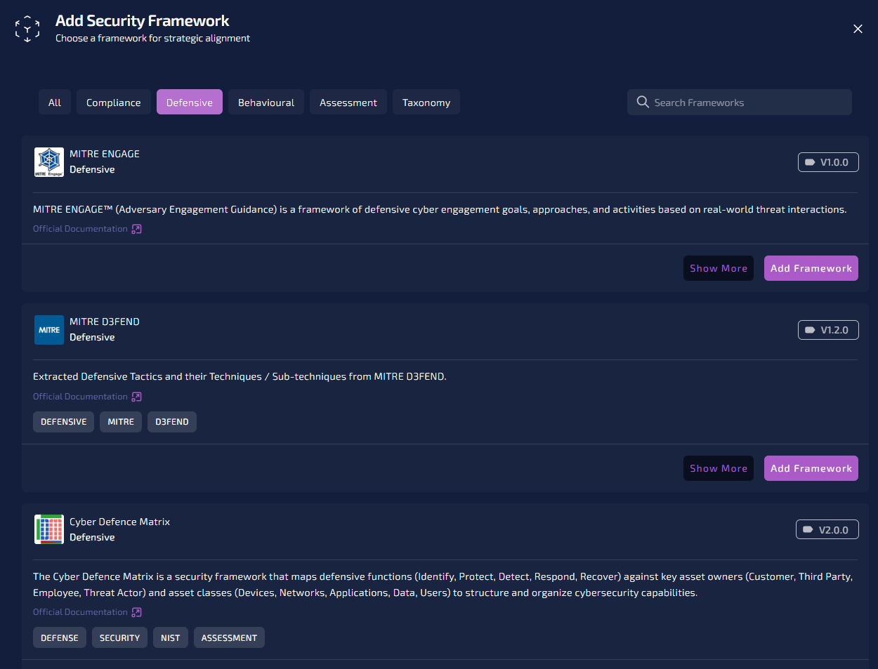 This is not about adding support for one more framework. It is about supporting any framework, consistently, accurately, and at scale... NIST, MITRE, CIS, ISO, PBOM, Cyber Defense Matrix, Insider Threat and even your own internal frameworks!